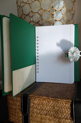 Livro Chic - uso de fita de ceda para fechar e fivela decorativa, tag ou etiqueta para marcar a página com bolso